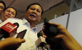 Sejumlah karangan bunga terlihat berjajar di depan kediaman Prabowo.